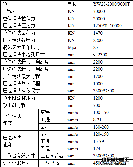 2800噸封頭壓力機(封頭拉伸機)的技術參數:(僅供參考)